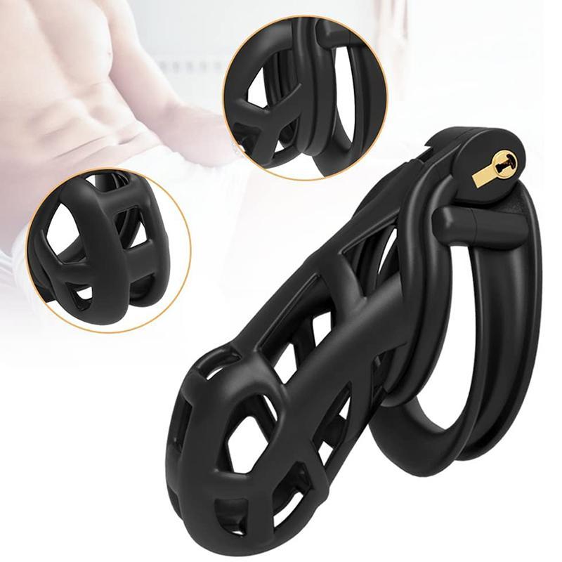 Men's Resin Nylon Chastity Belt Set with 4 Cock Penis Rings Sleeve Lock Cobra Cock Cage with Keys Male Extreme Bondage Sex Toys