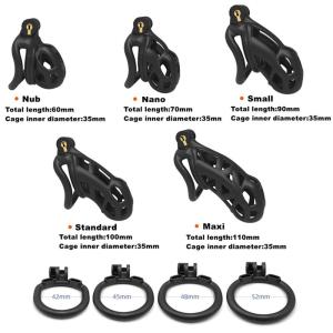Specifications: This product is perfectly suitable for male, men, husband, etc. Designed with many excellent characteristics such as fine workmanship, burr free and mini size, this unique male penis cage is suitable for most people's size, bringing them a unique night. Super light male chastity device can bring you comfortable wear feeling. In addition, the advantages of eco-friendly makes you can wear it safely without causing any skin stimulation. It is made of high-quality resin material. There are 5 different sizes for you to choose from. Item Name: Male Penis Cage Features: Eco-friendly, Long Lasting, Reusable Material : Resin Manual : no