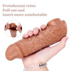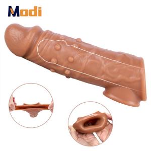 MoDi Realistic Penis Sleeve Extender Reusable Dildos Condom Delay Ejaculation Dick Enlargement Sex Toys for Men